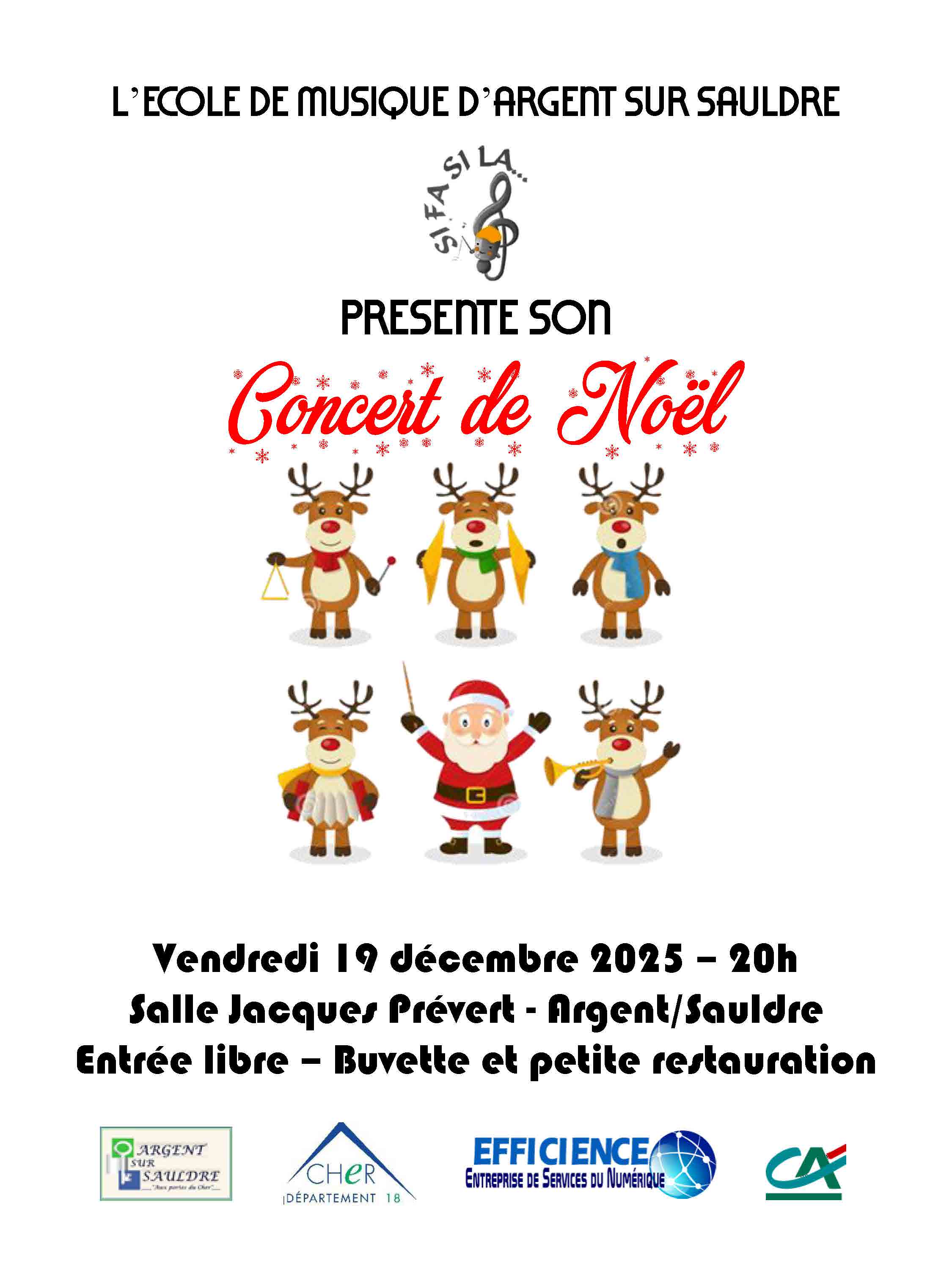 L'école de musique SiFaSiLa organise son concert de Noël le vendredi 19 décembre 2025 à 20h00 à la salle des fêtes J. Prévert.